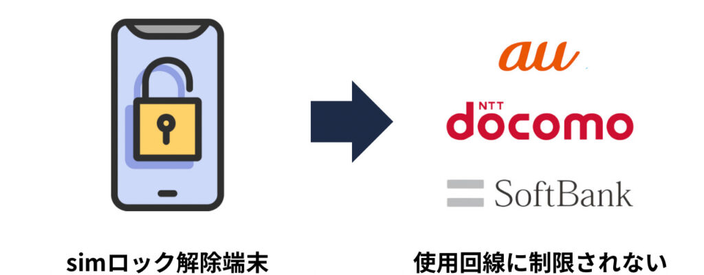 通信会社で購入したスマホは、購入した通信会社以外では使用できません。その仕組みを「SIMロック」と言います。例えば、auで購入したスマホはau回線のみの使用に制限されます。